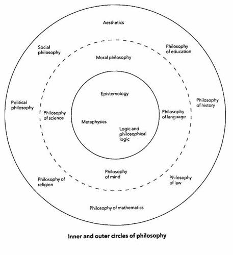 Yukarıdaki şemada felsefenin çeşitli dalları gösterilmiştir. Bu dalların dairelerde içten dışa doğru yerleştirilmesi hangi alanın daha temel olduğunu ve aralarındaki etkileşmeyi ifade etmektedir. En temelde Bilgi Felsefesi, Metafizik ve mantık ile Felsefi Mantığın bulunması bu üç alanın diğer alanlara temel oluşturduğunu göstermektedir. Örneğin, bilgi felsefesi ahlak felsefesine temel oluştururken, ahlak felsefesi de siyaset felsefesi ve eğitim felsefesine temel oluşturmaktadır. Ama bunun tersi söz konusu değildir. Üçüncü dairede yer alanlar birinci ve ikinci dairedekilerden, ayrıca her daire içindekiler de kendi aralarında birbirlerinden yararlanır.