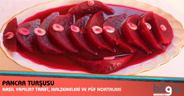 - Dilimlenmiş pancarlar bir kavanoza yerleştirilir, diğer taraftan sarımsaklar ayıklanıp havanda dövülür. Sirke, sarımsak, tuz, şeker ve kaynatılıp soğutulmuş 1 bardak su bir kapta karıştırılır.