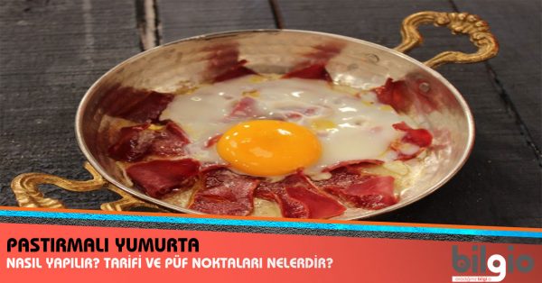 - Yumurtalar çatalla çırpılarak pastırmaların üstüne yayılır, tuzu atılır.
