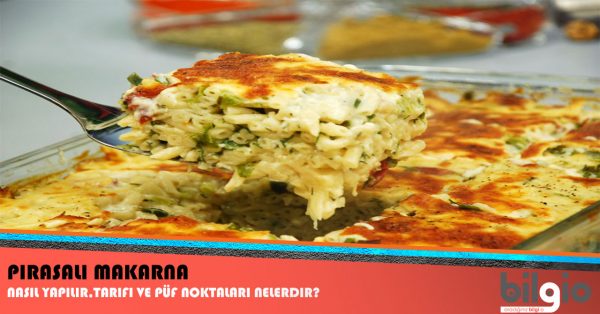 - Cam tepsiye haşlanan makarna koyulur. Kavrulmuş pırasa-sosis üstüne dökülüp her tarafına yayılır. Tuz ve karabiber serpilir.