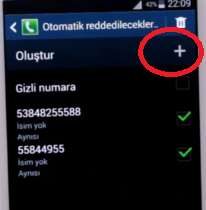 Diyelim ki engelleme yaptığınız numara artık size ulaşabilsin, arayabilsin, mesaj atabilsin istiyorsunuz. Arama engellemeyi kaldırmak için yukarıda resimlerle tarif ettiğimi adımları takip ederek “Otomatik reddedilecekler listesi”ne kadar geliyorsunuz ve sağ üst köşedeki çöp kutusu sembolü şeklindeki “SİL” butonuna basıyorsunuz.