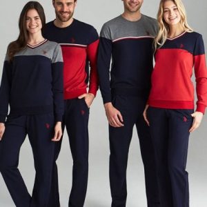 Yeni evli iki çiftin grup şeklinde kombin yaptığı pijamalar. Polonun bu ürünlerini internetten uygun fiyata alabilirsiniz.